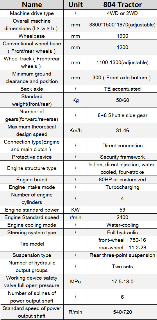 *The tractor has short wheelbase, shuttle shift configuration, compact structure, flexible operation, high working efficiency.